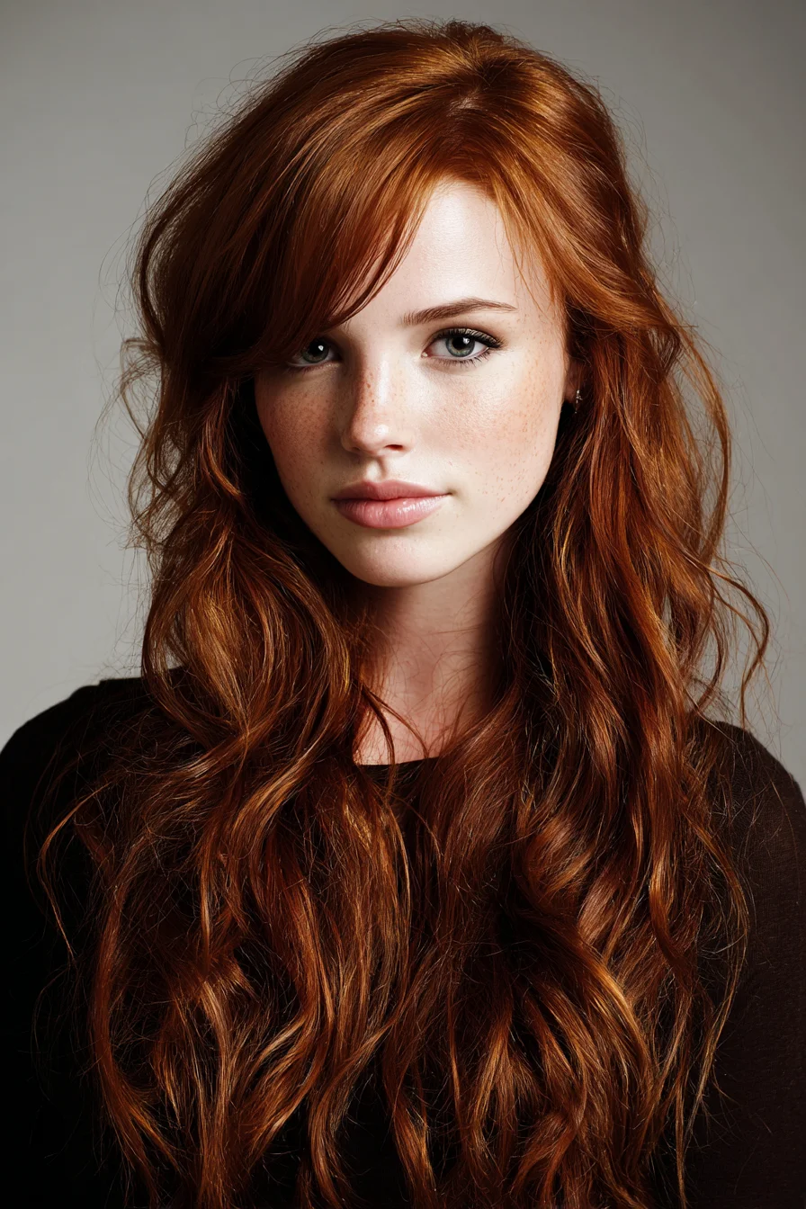 Soft Long Layered Waves with Curtain Bangs and Texture